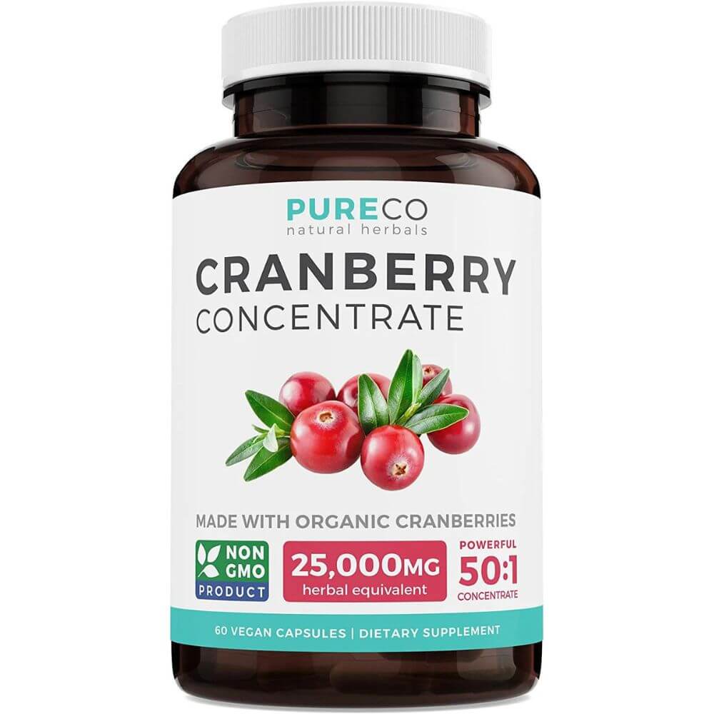Get ready to boost your health with PureCo Natural Herbals Cranberry Concentrate Vegan Capsules. These capsules are packed with the equivalent of 25,000mg of fresh, organic cranberries in just one vegan capsule – so you get all the benefits of powerful cranberry without any nasty additives. Sourced from local USA and Canada farms and certified organic & non-GMO ingredients; you’ll be getting only the best when you take these cranberry concentrate pills. Give your body what it needs to stave off that UTI with PureCo.