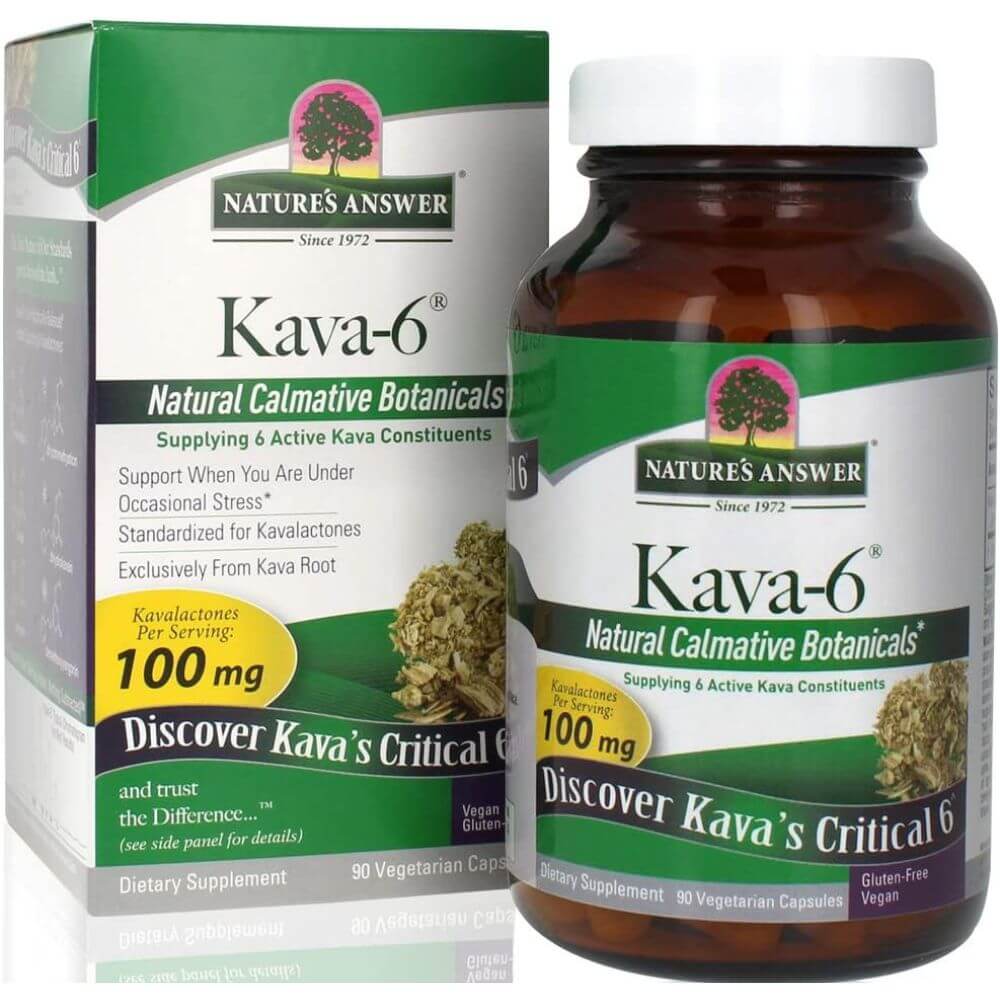 Nature's Answer Kava-6 capsules are a natural calming aid, stress reliever, and sleeping aid. Each capsule contains 100 mg of Kavalactones, which come from 6 important Kavalactones in each serving. These Kavalactones help to soothe away nervous tension while providing all of the benefits in a vegetarian capsule.