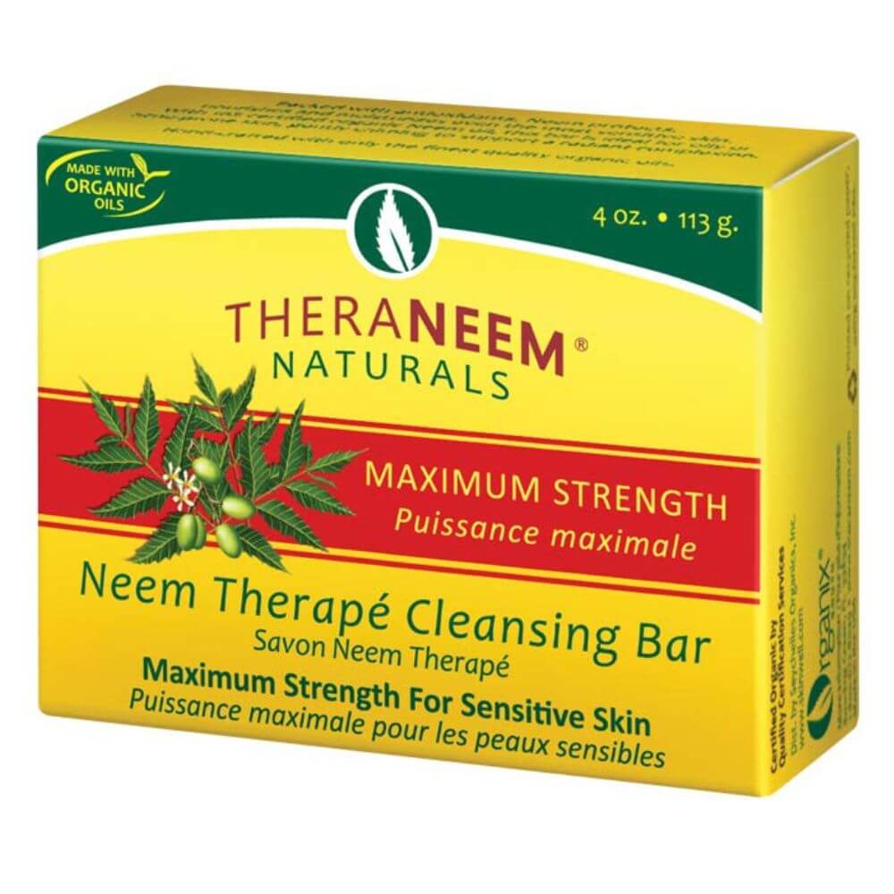 TheraNeem Natural's Maximum Strength Neem Oil Cleansing Bar is a gentle soap and its soothing and nourishing properties make it an ideal ingredient for dry, challenged skin. Neem has been used for thousands of years in Ayurvedic traditions for its beneficial effect on the body.